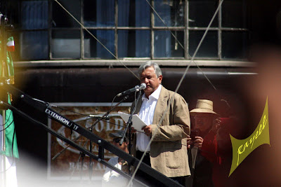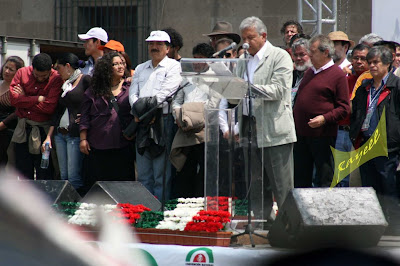 - Desde las campañas para la presidencia de la República, grupos empresariales aliados con el PAN lanzaron campañas llenas de calumnias y mentiras para hacer ver a Obrador como un hombre violento, y todos los días se miente en los medios cada vez que pueden para decir que el promueve la violencia, pero yo nunca he escuchado que el promueva acto alguno de violencia, lo único que el ha pedido a los miles y miles de simpatizantes es lo que el hace con su ejemplo: mantener su convicción, su lucha, su tenacidad para repudiar con su el trabajo diario y alzar la voz contra la corrupción que ha caracterizado a los gobiernos del PRI y del PAN, él por el contrario siempre ha sugerido que sean movimientos pacíficos, nunca por la vía de la violencia y menos por al armada.